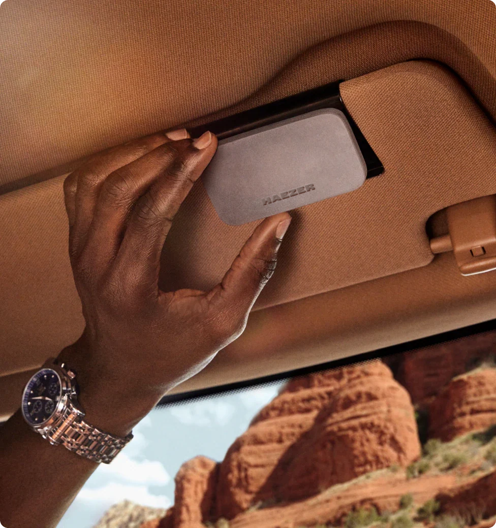 Nossas fragrâncias Haezer® são banhadas em óleos essenciais e magnetizadas para se fixarem perfeitamente no seu para-sol com nosso clipe de metal.